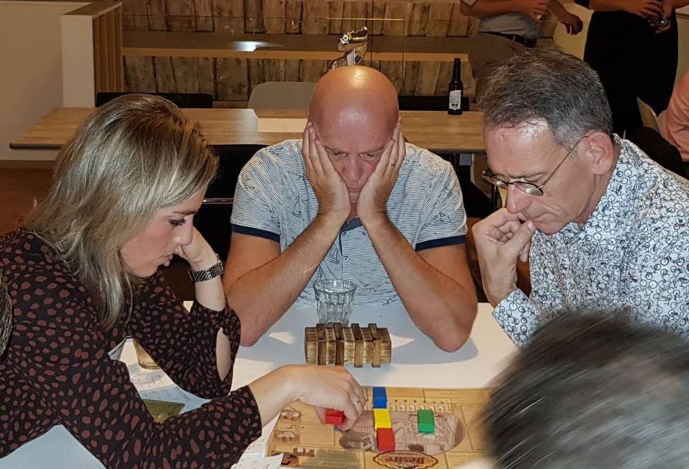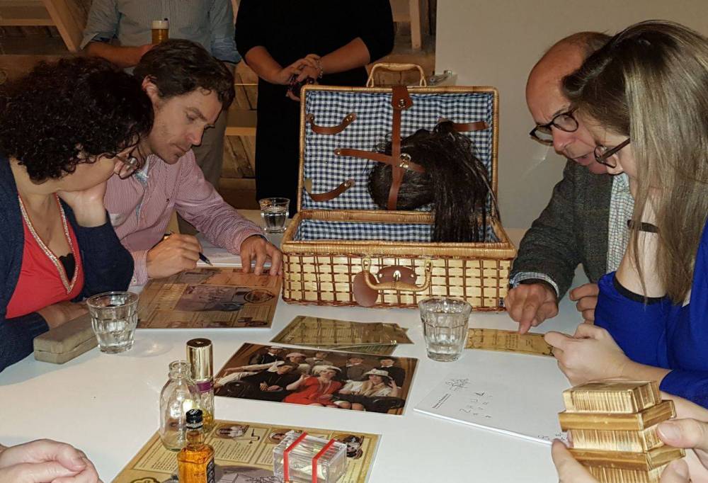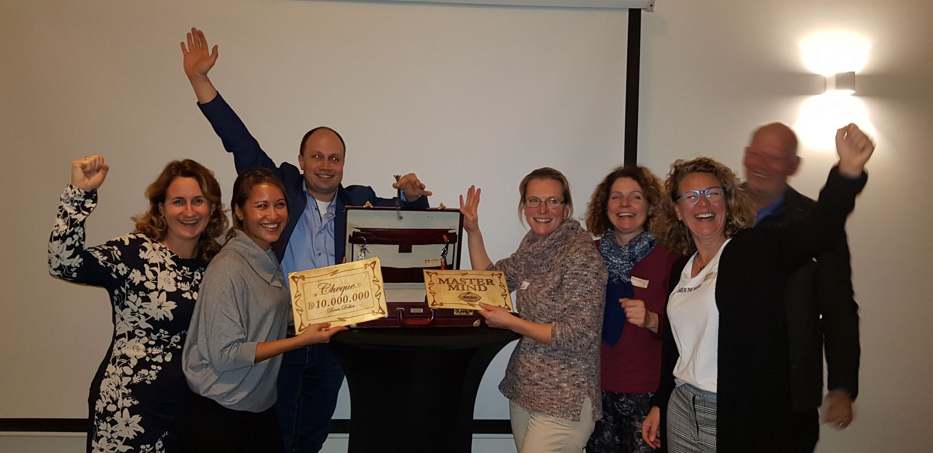 Tussen de borrel en het heerlijke diner met wisselende tafelschikking, was het tijd voor de escape room. Geen donkere kamer met een slot erop, maar een koffer vol hints en opdrachten waarmee iedere groep, door samen te werken, 'de moordenaar' binnen het spel kon ontmaskeren. De groep die als eerste de oplossing vond kreeg de code van de 'kluis' en werd daarmee de winnaar van het spel.