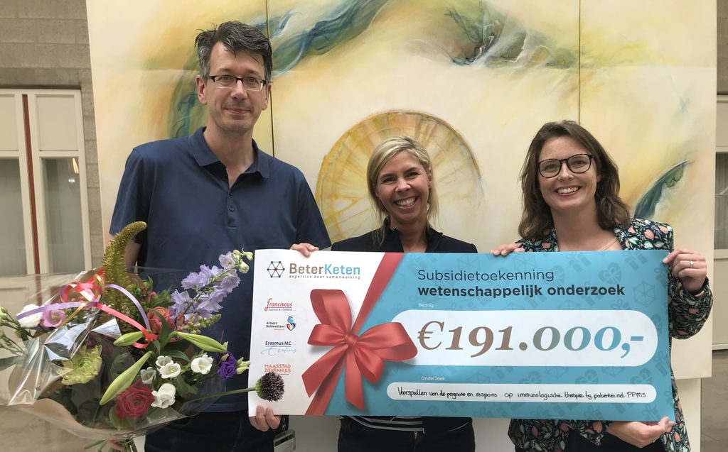 Met een promotiesubsidie van Stichting BeterKeten kan Janet de Beukelaar, neuroloog, gedurende drie jaar een promovendus aanstellen in ons ziekenhuis. Met de subsidie wordt onderzoek gedaan naar hoe de prognose en respons op immunologische therapie voorspeld kan worden bij patiënten met Primair Progressieve Multiple Sclerose (PPMS).